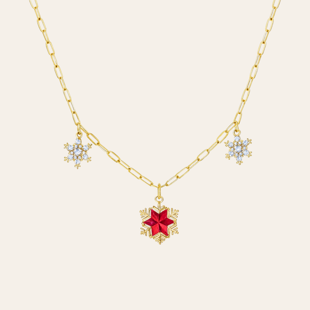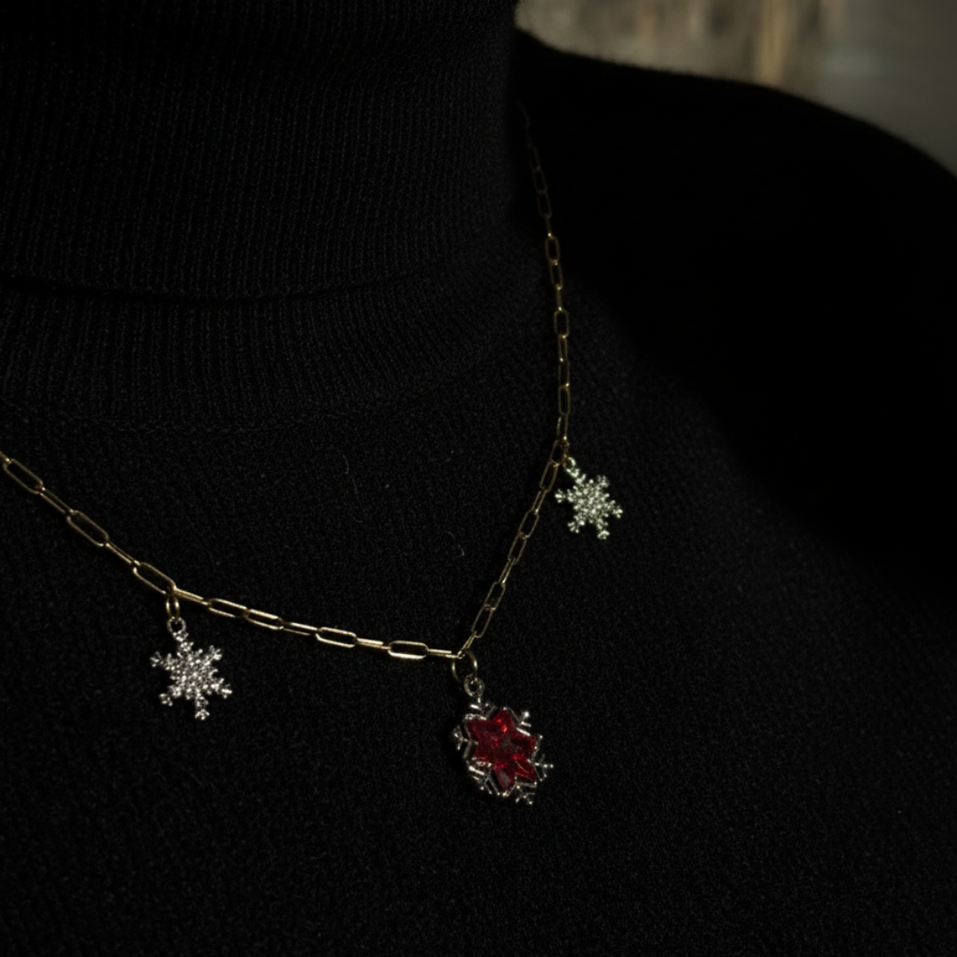 Ses charms dorés scintillants et son pendentif rouge lumineux reflètent la magie et la chaleur de la saison.